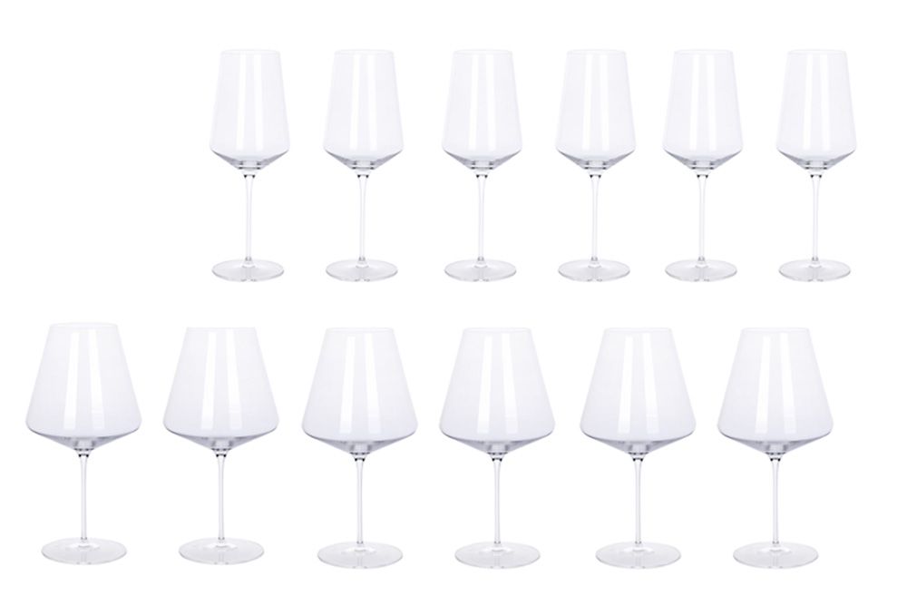 Glassenes markante skjenkelinje gjør det tydelig hvor man bør skjenke vinen, for å ha riktig mengde luft til å kunne snurre vinen rundt i glasset, noe som gir optimale betingelser for at vinens smaknyanser skal utfolde seg.