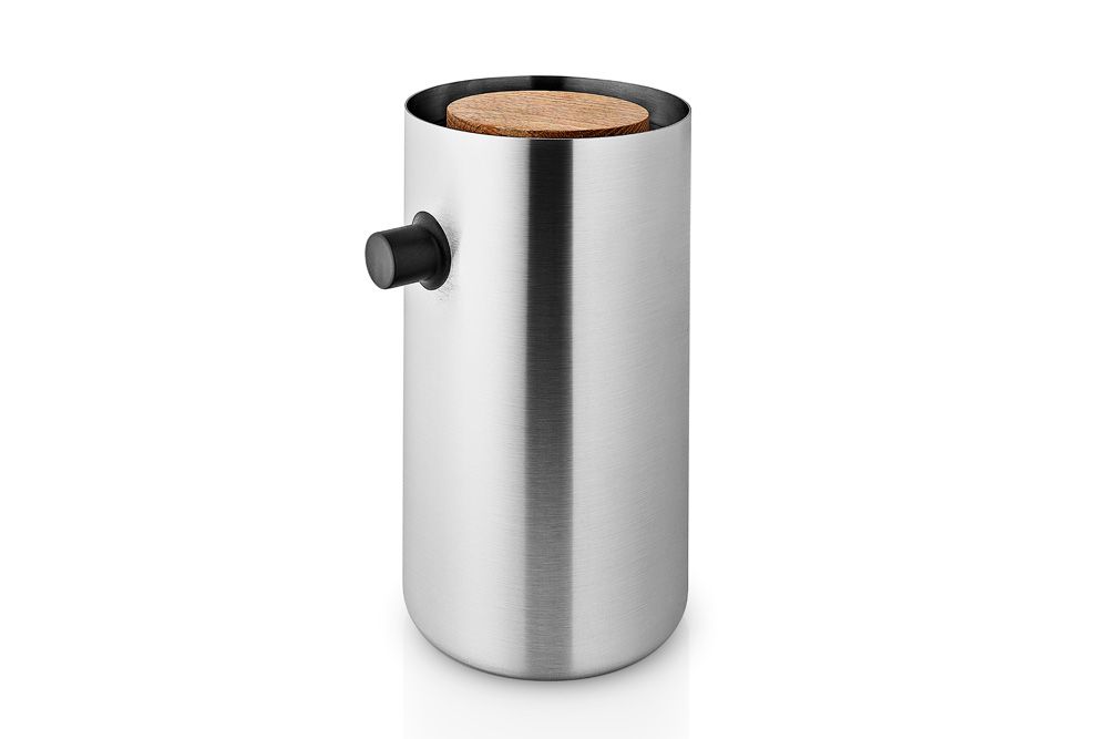 Kannen er laget i rustfritt stål med et eikelokk som bryter med det stilrene designet. Termostålinnsatsen gjør termokannen ekstra robust og hjelper med å holde kaffen varm lenger.