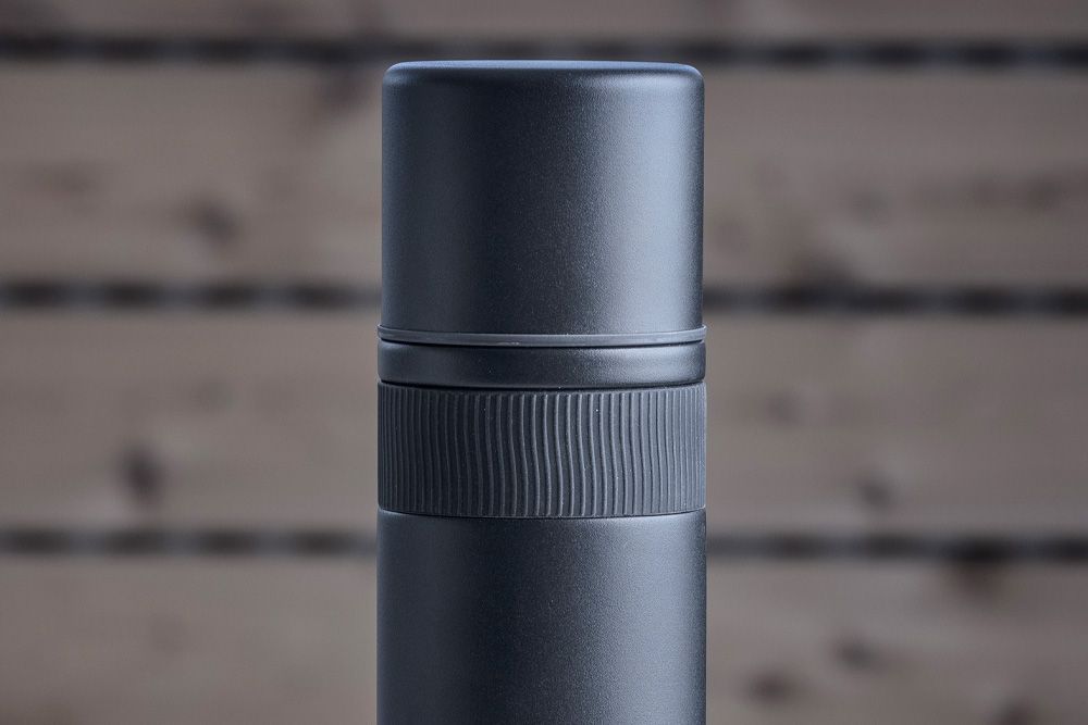 Termoflasken er laget av rustfritt stål med en matt sort coating og et smart, rillet silikonhåndtak som sikrer godt grep i all slags vær.