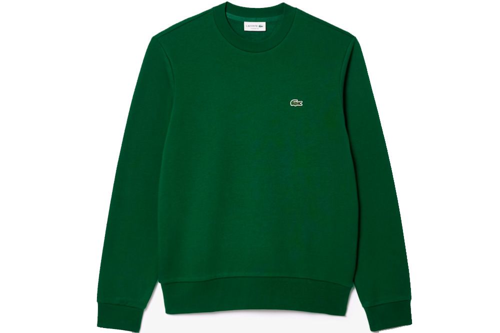 Den grønne genseren har en klassisk passform med rund hals og en deilig, børstet innside – og selvfølgelig den velkjente krokodillen brodert på brystet. Genseren er laget av 81,5 % organisk bomull og 18,5 % resirkulert polyester.