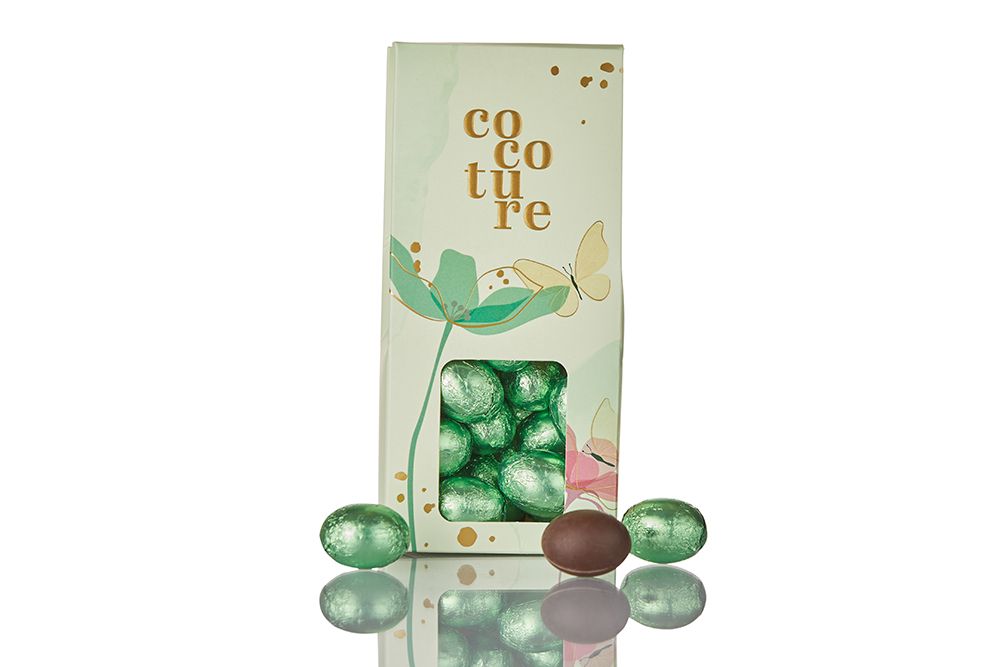 Oppdag gleden ved våre fylte folieegg, vakkert presentert i en dekorativ dragéboks. Disse delikate sjokoladeeggene byr på en rik og fløyelsmyk smaksopplevelse som smelter på tungen. En perfekt liten gave til påskens kaffestunder eller som en eksklusiv oppmerksomhet til noen som fortjener det lille ekstra.