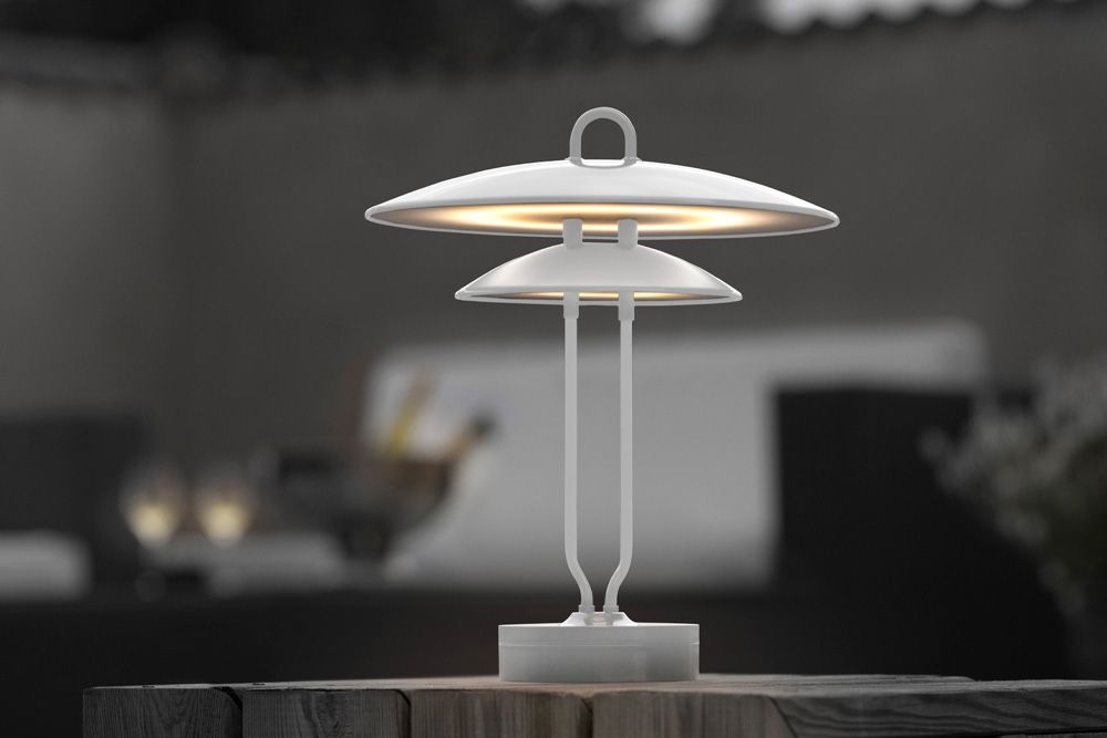 Oppladbar lampe designet av Tobias Jacobsen, som en hyllest til sin farfar - den verdenskjente designeren Arne Jacobsen (1902-1971).