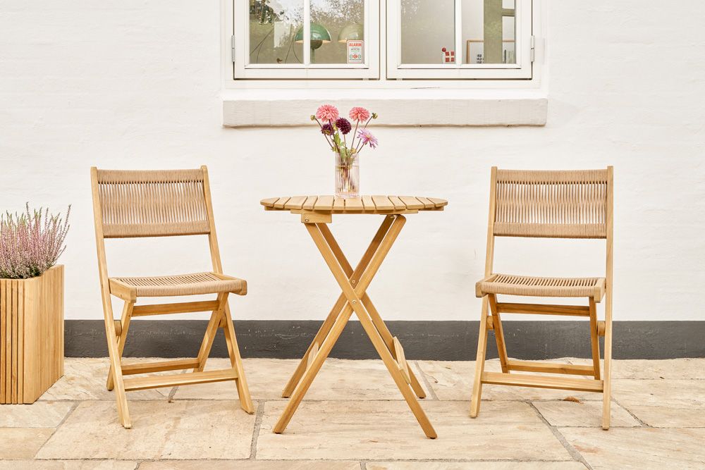 Det elegante Sandvig-settet er perfekt til både balkongen eller det lille hjørnet på terrassen, hvor kveldssolen nytes. Sett består av bord og to stoler, som begge er laget av FSC-sertifisert akasietre.